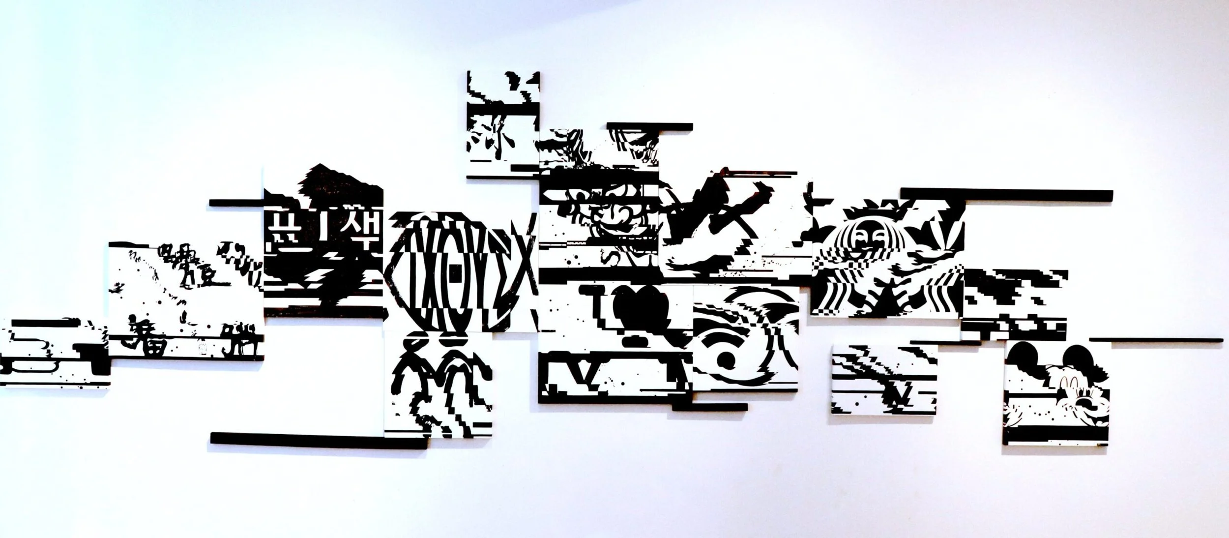 In NoHo, New York, at the Japan Premium Beef butcher shop, Seungjin created murals that combine digital and nondigital elements. Using AR technology and automatic glitch-inspired painting techniques applied over digital signals, he produced a hybrid visual experience that merges virtual and physical layers.